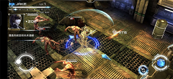 1、在關卡當作能夠利用虛擬搖桿控制機甲進行闖關;