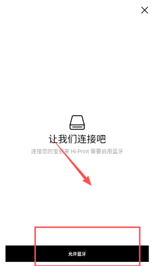 2、根據(jù)提示開啟手機(jī)藍(lán)牙,以便搜索并連接你的寶麗來 HiPrint 打印機(jī)。