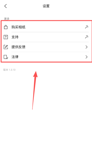 4、在設(shè)置菜單中,你可以進(jìn)行購買相紙、尋求支持或提供反饋等操作,并在此查看當(dāng)前軟件版本。